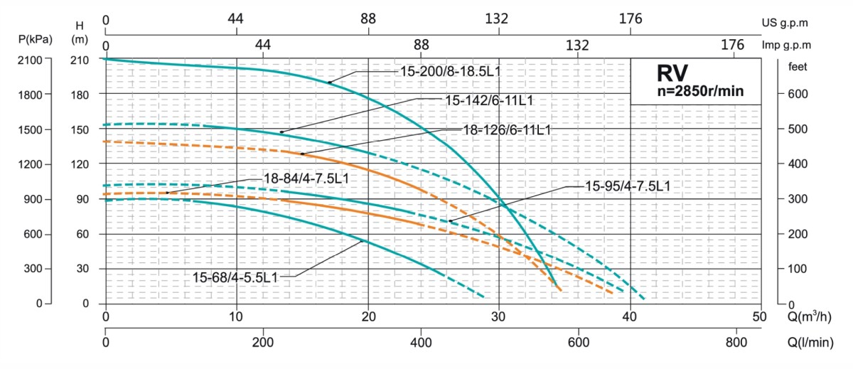 Насосы серии RV с высоким давлением широко применяются во многих областях, таких как сельское хозяйство, полив посевов, садовое орошение, водоснабжение скважин или резервуаров, аква-культура и т. д.