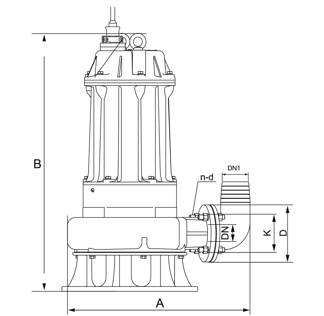 - Погружной насос высокой мощности для сточных вод с стандартным фланцевым выходом.