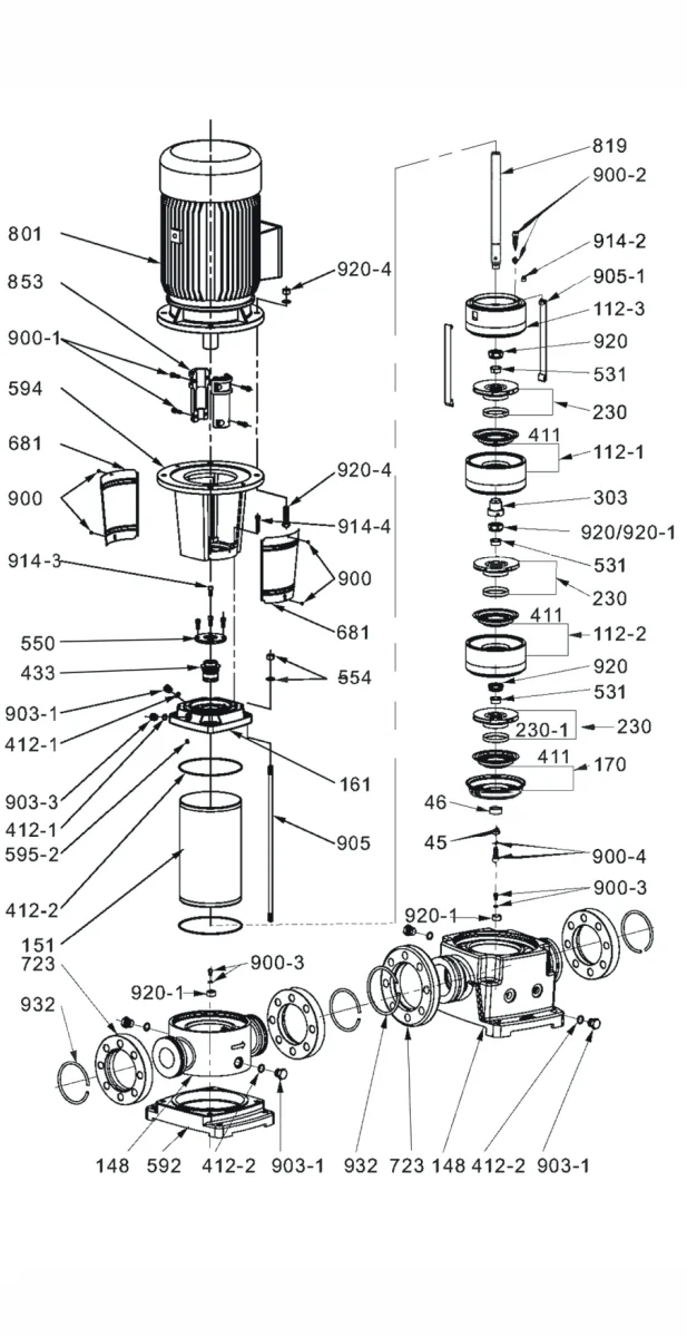 Каталог запчастей (взрыв-схемы) насосов ONIS MVS 32-45-64-90